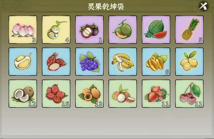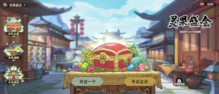 在获取一定量果盒后,玩家可以打开果盒获得大量灵果,玩家可以在灵果乾坤袋中查看已拥有的灵果数量。