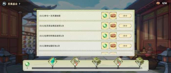 道友们可以通过完成每日任务获取对应的果盒,每完成一个任务,获得的果盒就会更多,达到一定数量可以获得更多珍稀奖励哦。