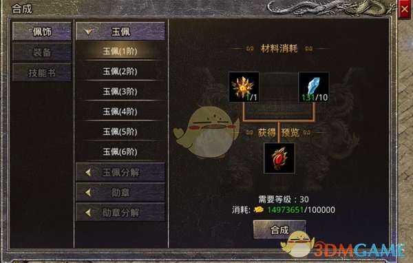 玉佩试炼:通关后可以获得玉佩碎片,玉佩碎片可以提升玉佩等级,从而提升玩家的攻击力