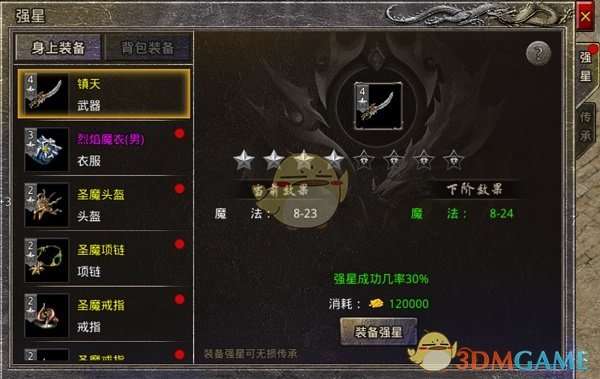 获取到自己需要的装备后,还可以通关装备强星的方式来进一步提升装备的各项属性值,强星需要较多的金币,玩家可以通过回收掉一些低级装备从而获得金币。