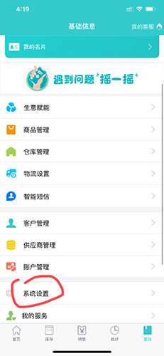 1、首先点击右下角基础,然后点击系统设置。