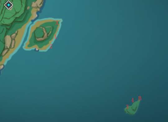 海中小岛上B处:站在小岛边沿,面向雷樱,背对大海,右侧为3左侧为4。