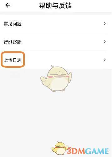 3、切换到帮助与反馈页面以后,点击【上传日志】。