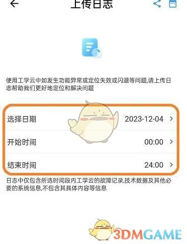 4、设置一段时间内的日志以后,点击【上传日志】即可上传日志。
