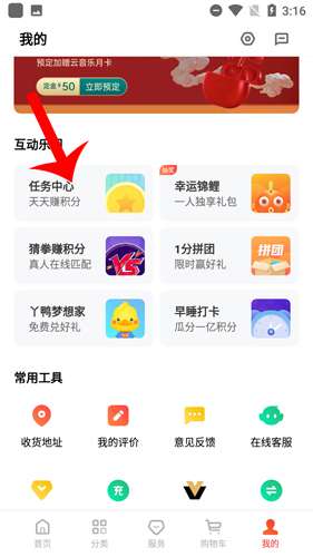 2、下拉找到互动乐园,在互动乐园中选择并点击活动即可获的积分。