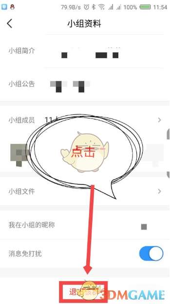 4、在打开的小组资料界面,滑动到屏幕的下面,点击退出该群。