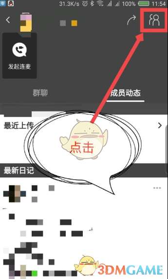 3、点击群后,在打开的学习群界面,点击顶部右上角的两个人图标。