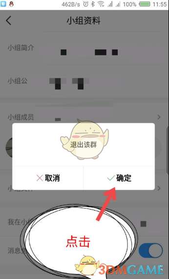 5、点击退出该群后,会弹出一个退出群的确定窗口,点击右边的确定退出群。
