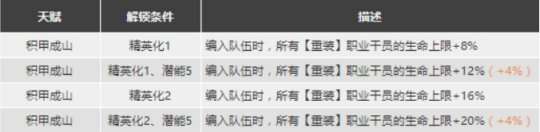 根据技能描述,年的能力是为队伍中所有的重装干员提供额外的20%生命上限。这意味着在有年加入队伍时,全队的重装干员都能够获得一个不错的常驻强化。尽管20%的加成在实际应用中不算太高,然而它作为一个光环技能仍然非常有用。