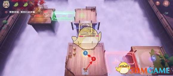 2、然后让不倒翁重现刚刚的操作,操控角色按照下方路线进行前进。