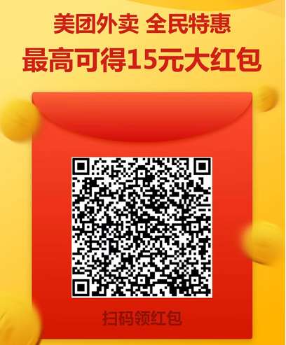 1、打开美团APP或微信,扫一扫下方二维码即可领取红包,新用户金额更大