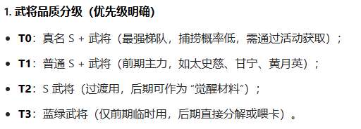 2. 觉醒不“浪费”:仅用T2/T3武将当材料,不分解主力卡;