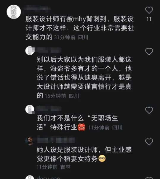 除了这个现实主义以外,还有网友作为服装设计师,也即和千织一样职业的现实玩家发言称,千织算是服装行业工作人员的反面教材了。这个行业本身是非常需要社交的,越是大的设计师越需要谨言慎行,而千织属于那种说话无所谓的态度,策划莫不是《穿普拉达的女王》看多了,想要塑造一个那样的经典形象?