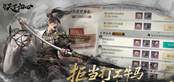 游戏和以往的套路是完全不一样的,你就不需要去拓展领地,然后对着地图去慢慢的耗时间,也没有必要天天守着资源去种田,担心自己可能会错过每一分的产出。在游戏中没有内卷竞争,你并不需要为了去追进度而让自己两眼通红。在玩游戏时就会拥有一个轻松感,那游戏中就有一个很贴心的主公成长系统。在这里你就可以轻松的获得金币,不仅可以让武将单打独斗,而且你也可以和其他的武将一起并肩成长,带着赵云或者关羽去闯荡江湖。