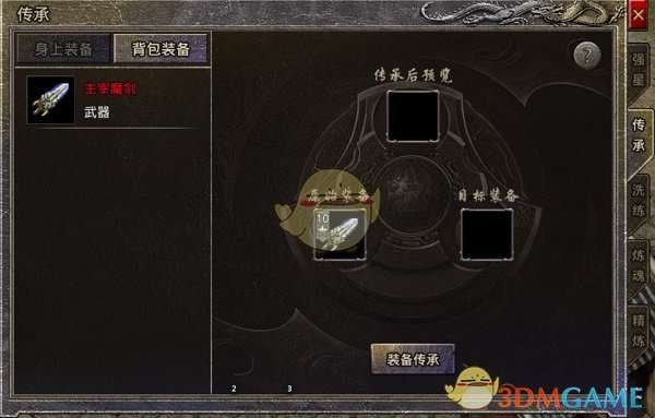 2、装备传承仅限低品质装备向高等级装备或相同品质装备传承。