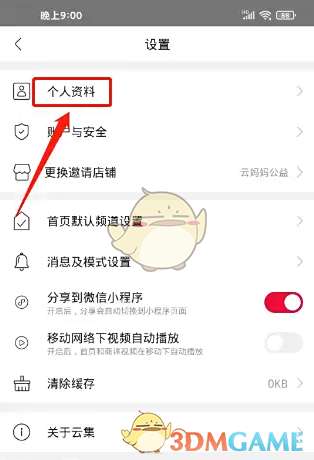 1、打开云集app后,进入设置,点击(个人资料)选项。
