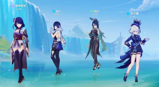 这支队伍是由之前的“雷夜琴芙”升级而来,由闲云替换了琴。闲云全队持续奶量更契合芙宁娜,并且也可以让雷神在开大招期间打出下落攻击的效果,也算是解锁了一种新玩法。