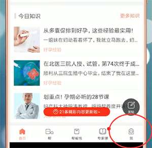 1、手机打开【妈妈帮】app,在屏幕下方找到并点击【我】;