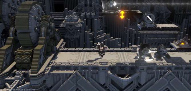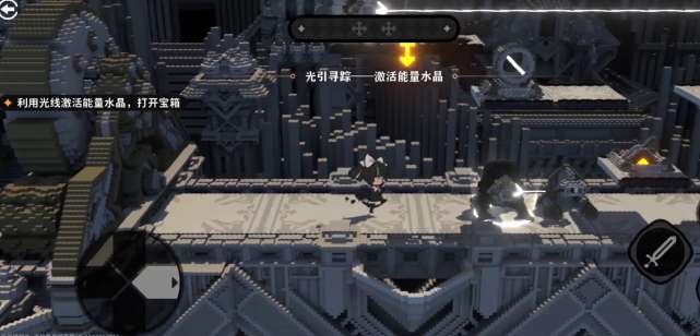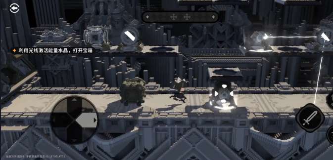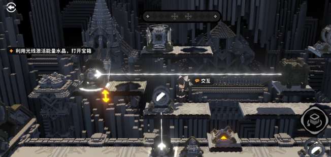 在进入到第1个关卡时,难度真的很简单。玩家可以开启寻宝人的挑战,先直接跳到第1个交互点,接着又跳到第2个交互点完成光线的调整之后就可以拿到奖励。那第2个关卡就是直接跳到平台上,接着跳到第2个平台,只需要点一下交互,就可以让镜面翻上去。这个时候的平台就可以慢慢的降到底,等到落地之后往左边跳,可以精准的落到中央交互点的位置。