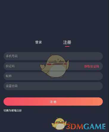 3、紧接着我们找到登录旁边的【注册】按钮,点击切换到注册页面。