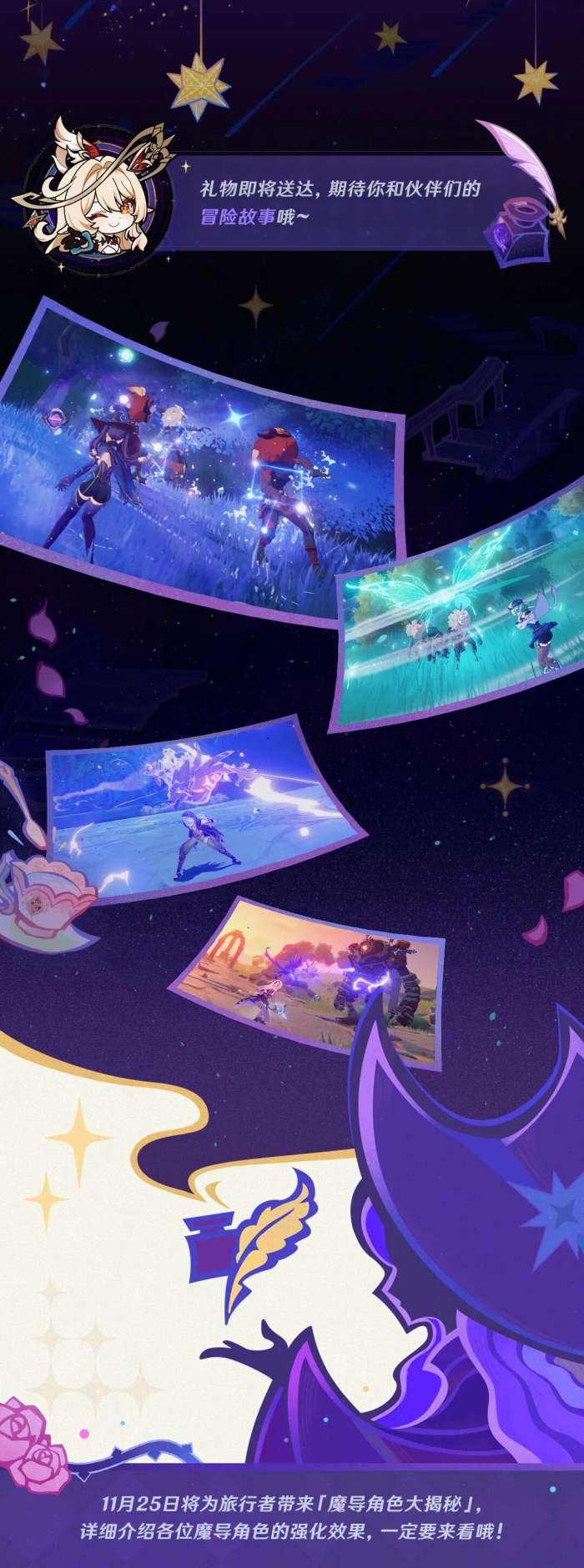 最近蒙德图书馆收到了一堆书,其中有一本似乎十分特别——原来是艾莉丝送来的礼物。为了应对无法预测的未来,旅行者要和伙伴们做好准备才行哦,快来了解吧~