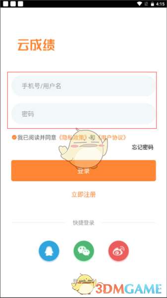 1、打开云成绩APP,输入账号和密码登录该平台即可查询到自己的考试总分。