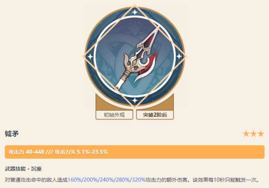 白缨枪属性优秀,适用于所有输出型长柄武器角色。但三星武器白值过低。有更好的武器就可以换了。不过赛诺用精5白缨枪强度还不错。