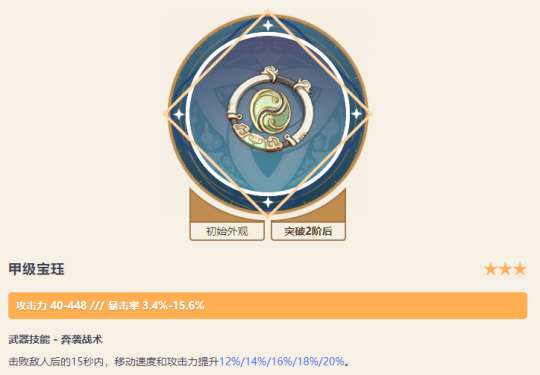 四风原典的体验版。这个武器可以说是法器站场主C角色的最佳前期过渡武器了。对群非常快乐。就是暴击加的太少了,满级也才15.6%,否则游戏后期它也有出场机会的。