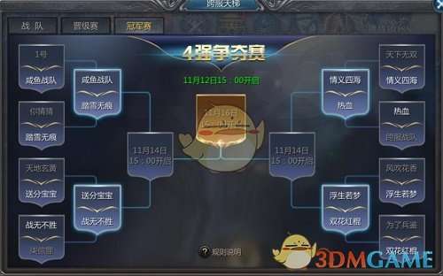 3、冠军赛当天16点赛程结束后,如竞猜的队伍胜利将获得一定比例的元宝奖励。