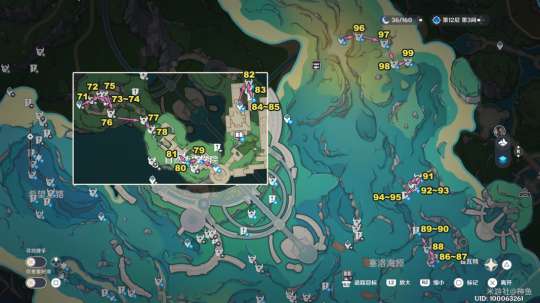 黄数=99个通过采摘的方式获取的「苍晶螺」;橙数=15个通过购买的方式获取的「苍晶螺」