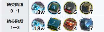 精英阶段1:龙门币*30000、特种芯片*5、装置*5、固源岩*7