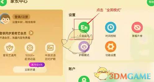 软件提交 专题合集 热门手游要关闭爱奇艺奇巴布的全英模式,我们可以先打开APP,在打开界面左下角点击“家长设置”,完成文字题验证家长身份后进入“家长中心”,接着在界面右侧“设置”中找到“全英模式”并关闭,即可将文字切换回中文。
