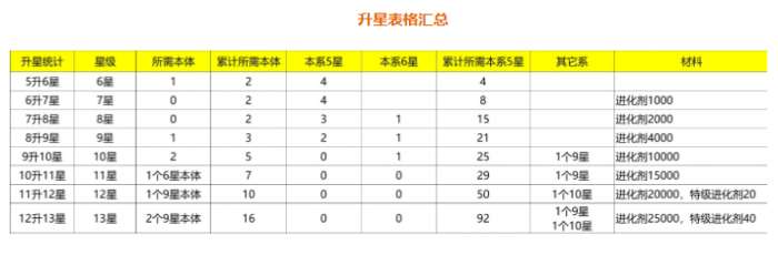 所需要的材料很多,这里只统计到13星所需要所有的材料