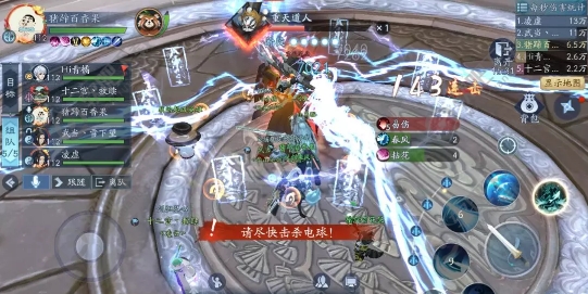4、唤雷术从四周召唤闪电球至BOSS身上,玄冥雷爆技能引导全屏AOE雷电,若身边雷电球越多,伤害越高,这个时候需要尽快击杀四周的闪电球,建议存绝学在此使用,当场上闪电球的数量被打完时,BOSS的全屏AOE最多只能造成半血伤害,奶妈一个大抬又能全员满血,没有闪电球,这个BOSS的伤害可以说是非常低的。
