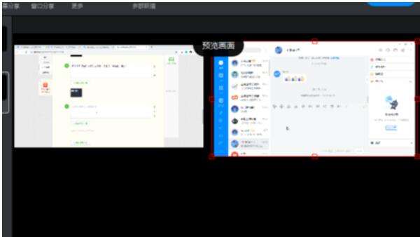 7、这样直播屏幕中就可以看到刚才选中的两个窗口了,添加后画面可能会有重叠,移动后通过调节小方块缩放窗口,将主讲窗口放大,辅助窗口缩小即可。