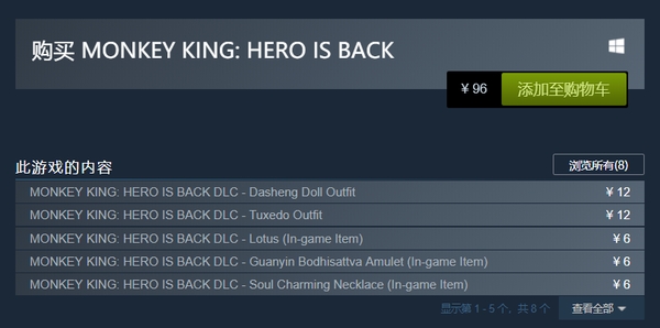 今天(11月15日),《西游记之大圣归来》Steam国区价格由196元永降至96元,降幅超过50%。PS4数字版价格并未调整。