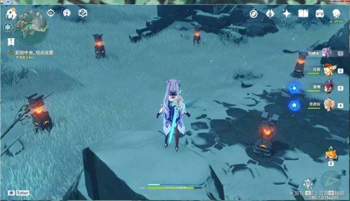 站的那个方地方有一个的火仙灵站上去,它就显现出来的,两个火仙灵围着这个东西转就可以把它给解开了。