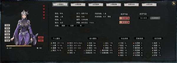 词条越多品质越高越好。之后就是查看人物技能及功法资质灵根资质,搞一些同阶的武技/灵技,绝技,神通,心法,身法全部赠送过去培养战力,