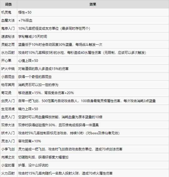 其中,“3通晓、5灵动、7大成、9觉醒、11大道”为特殊词条(只适用于武技/灵技和心法),各个武/灵都有自己各自的词条库(词条roll的类型好不好完全看这里了)