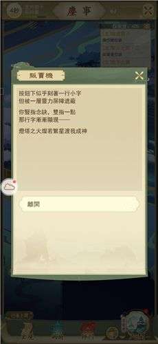 首先探查尘事界面的贩卖机,按钮下面刻着一行小字:“灯塔之火灿若繁星渡我成神”,这便是总控室的正确密码,复制粘贴到总控室的密码界面就能成功激活权限了。