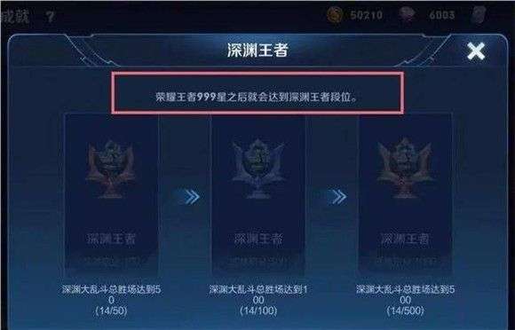 4、其实玩家完成这三个条件是不行的,因为上面还有个条件是荣耀王者的星到达999星。