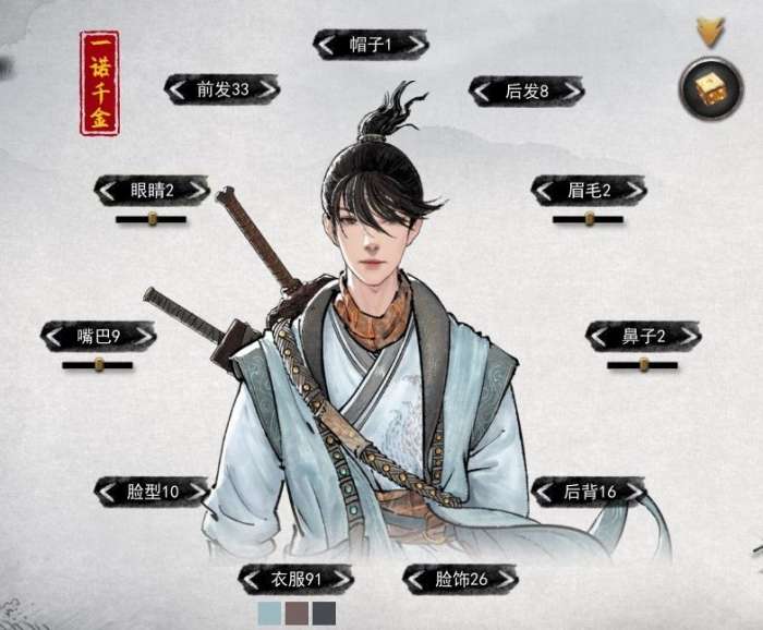 鬼谷八荒仙姿男一诺千金捏脸数据: