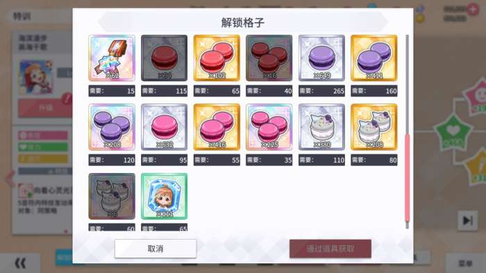 马卡龙/书籍/花朵这三种可以看作一类,在特训玩法里解锁普通格需要消耗马卡龙。