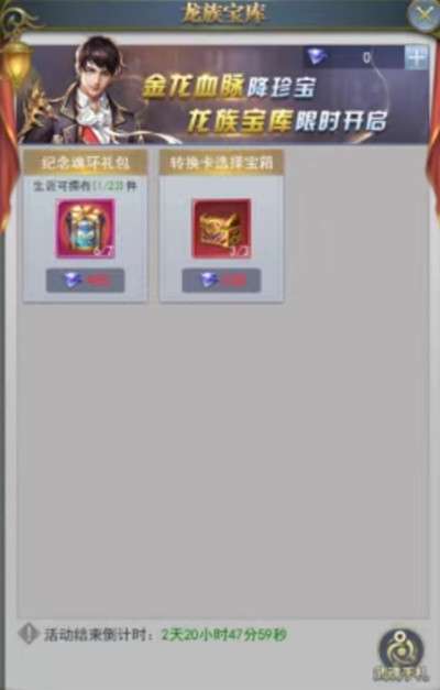 活动期间,可在龙族宝库购买各种稀有物品。凶兽魂环-女神蝶之耀,转换卡选择礼包隆重登场。机不可失,失不再来!