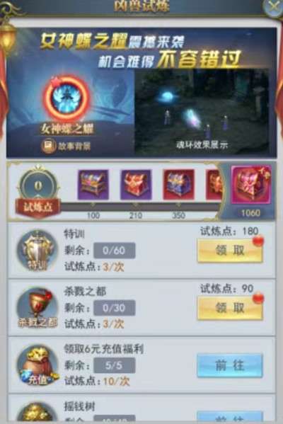 三、凶兽试炼(主要奖励:女神蝶纪念魂环礼包、魂核神弩礼包等)