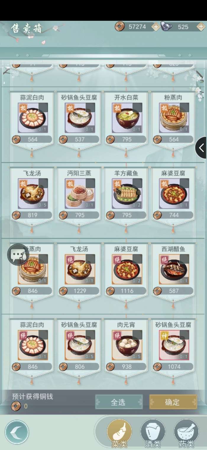 最后补一个刚才发现的!加经验越少的食物卖的价格越贵!下图麻婆豆腐《其它仨《飞龙汤,正好跟上面所说的加经验和亲密度的排序相反。肉元宵的价值在于卖钱!卖钱!所以这个游戏就是那些不适合喂猪的食物都会卖出较高的价格,算是一种给各个食谱进行了定位分工,总之就是挑便宜的菜喂猪,其它卖钱。
