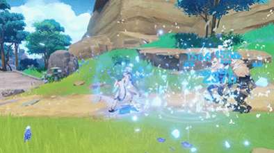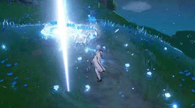 他能在短时间内使用「瞬水剑」迅速进行连续的大范围水元素攻击。同时也可以展开「清净之园囿」,降下水花剑持续攻击范围内的敌人,并提升范围内角色的普通攻击伤害。