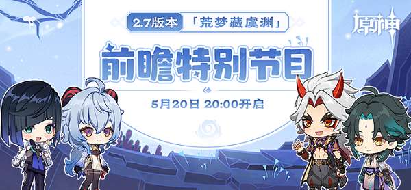 1.亲爱的旅行者,《原神》2.7版本前瞻特别节目将于5月20日(本周五)晚20:00正式开启。