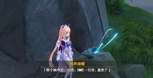 3.我们在这附近的幻境海螺中可以获取开启通路的提示:白绿红蓝,按顺序激活冰元素、风元素、火元素和水元素的方碑。随后空中就会出现一个传送通路,我们通过风元素攻击激活风车机关直接就可以飞到半空中进入传送门。