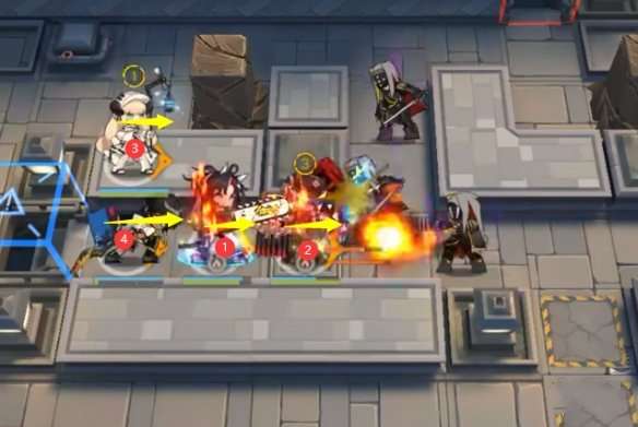 如下图所示位置顺序部署煌 → 塞雷娅 → 夜莺 → 棘刺即可,棘刺技能好了就开。